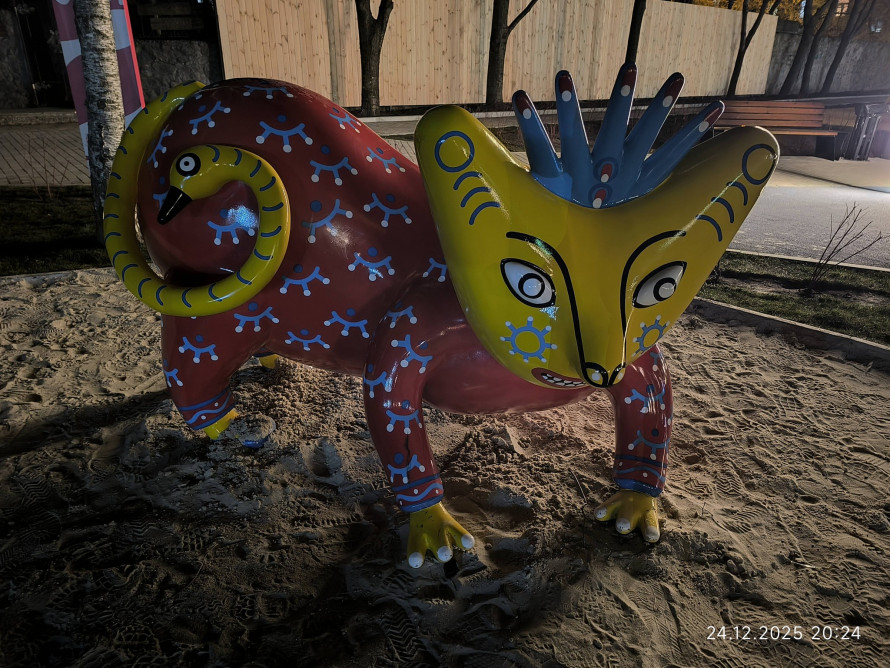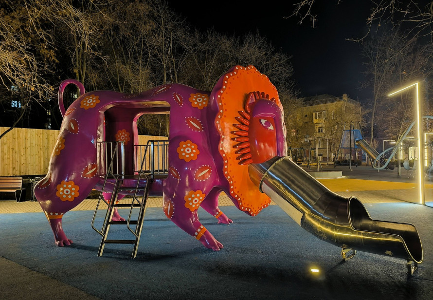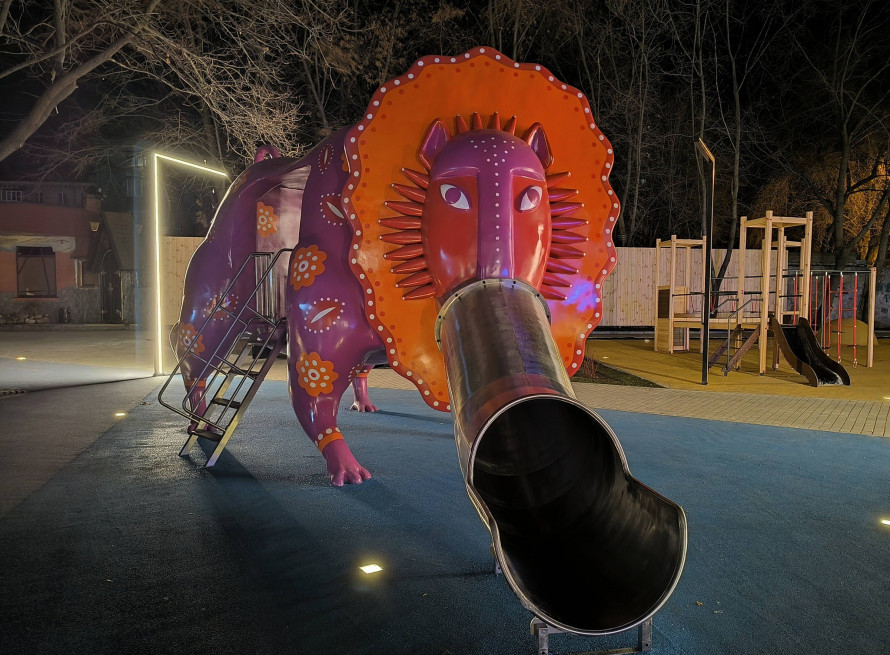 В Олександрівському сквері Запоріжжя відкрили дитячий майданчик з фантастичними звірями з розписів Марії Примаченко