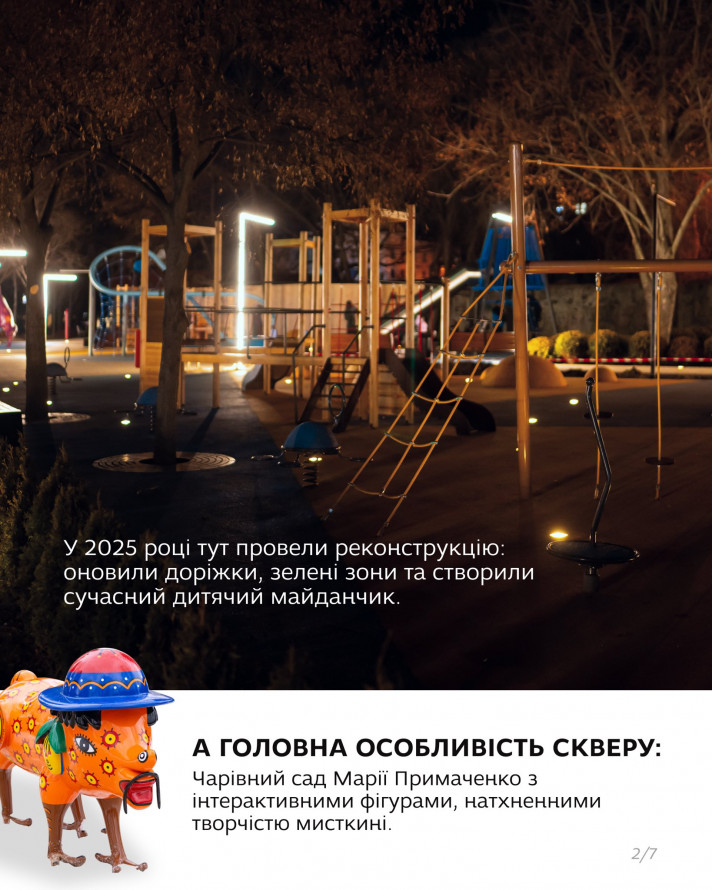 У 2025 році тут провели реконструкцію: оновили доріжки, зелені зони та створили сучасний дитячий майданчик.
