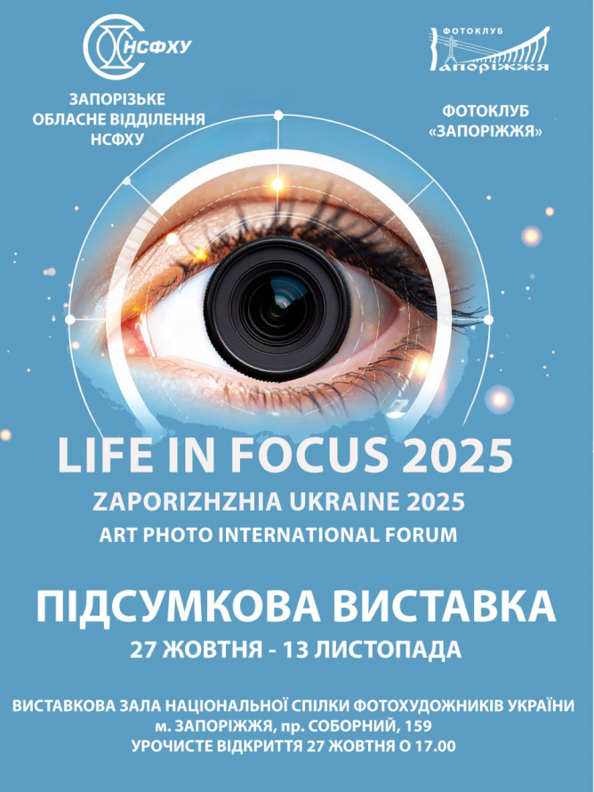 Виставку світлин фотохудожників з різних міст України "Life in focus 2025" ("Життя у фокусі 2025") відкрили у Виставковій залі Запорізької обласної організації Національної Спілки фотохудожників України або фотоклубі. На презентації побувала журналістка zprz.city.