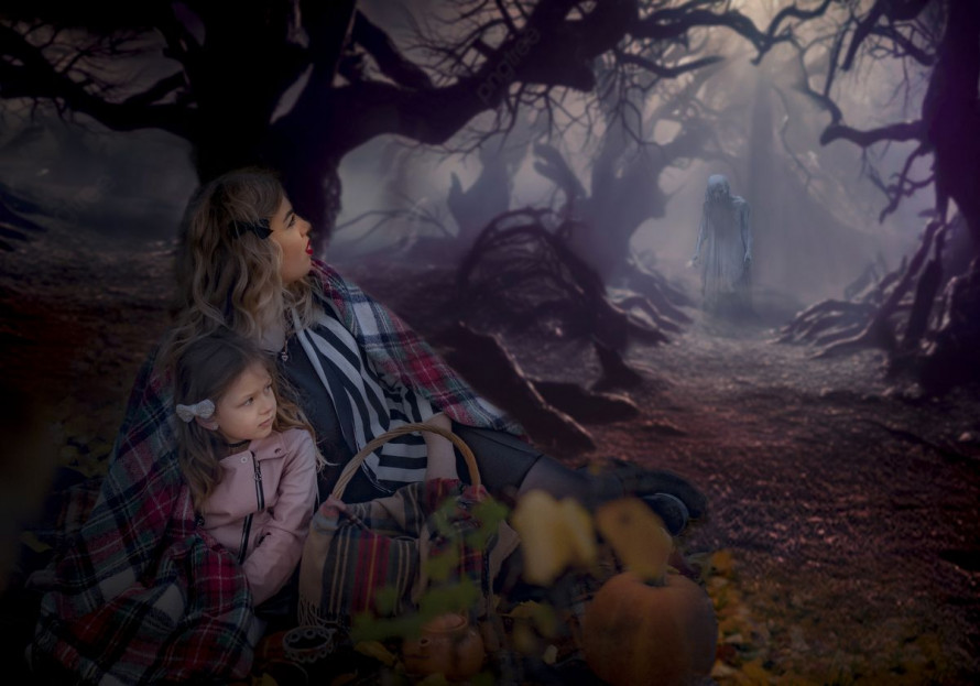"Друзі запросили мене пофотографувати на Хелловін минулого року сім'ю у приватному будинку в селі Канівському. Мати з донькою хтось покликав, вони повернулися і в цей час я натиснув на спуск. Коли переглядав це фото, то виникло відчуття, ніби вони в казковому лісі. І я трохи додав на фото казковості, додав привида".