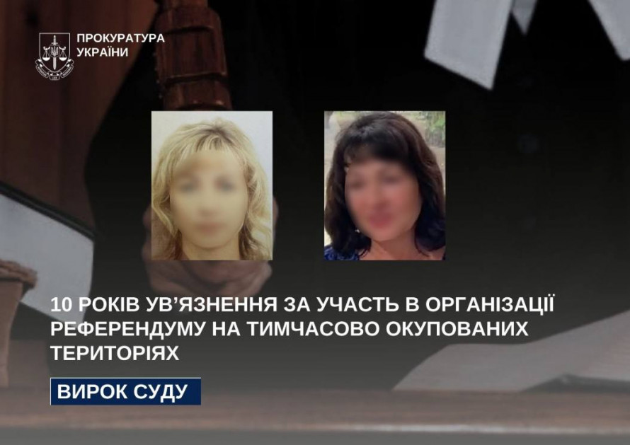 У Запоріжжі засудили двох громадянок України, які добровільно долучилися до організації та проведення незаконного референдуму на тимчасово окупованій території Запорізької області. Йшлося про голосування щодо входження регіону до складу російської федерації. Про це повідомили у пресслужбі Запорізької обласної прокуратури.