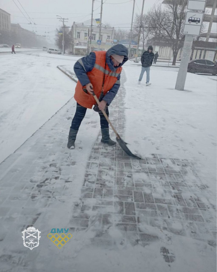 Комунальники проводять посипку доріг, очищення тротуарів і зупинок громадського транспорту, щоб місто залишалося прохідним і безпечним для жителів.