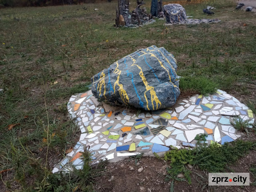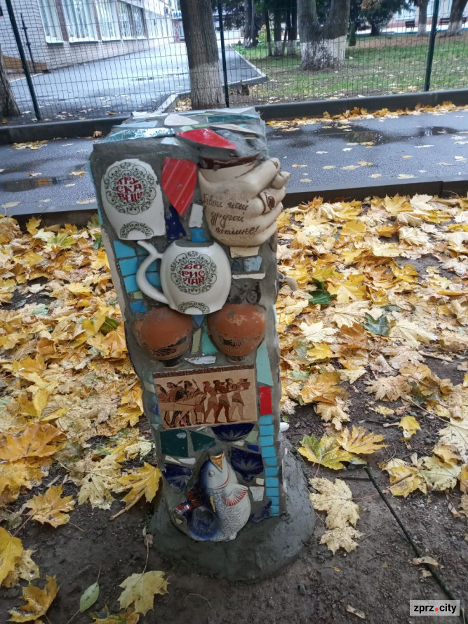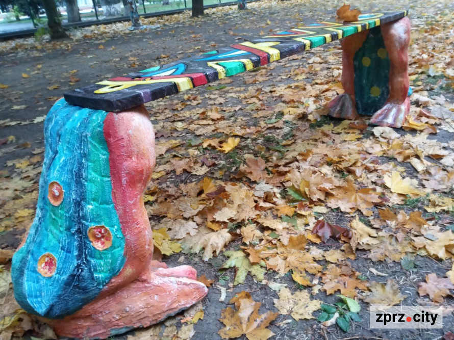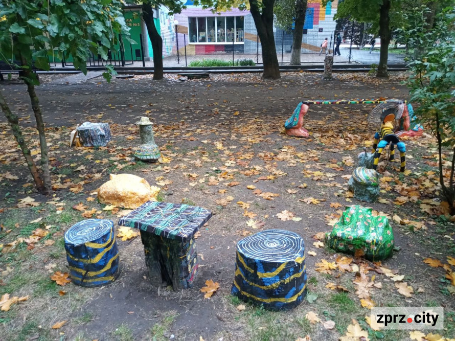 Лавка з ногами, кіт з посмішкою з клавіш, фантастична зелена істота, розумні равлики, стовпчики у мозаїці – ці та інші незвичайні артоб'єкти можна побачити біля школи мистецтв № 3, що у Хортицькому районі Запоріжжя.