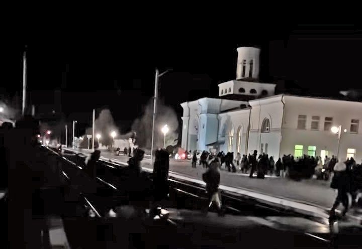 Частину людей розмістили всередині невеликого вокзалу, але через обмежений простір більшість залишилася надворі.