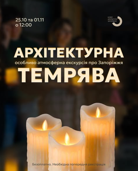 - 25 жовтня та 1 листопада о 12.00 - екскурсія про Запоріжжя "Архітектурна темрява", у Музеї архітектури Запоріжжя. Підійде і для дітей, і для дорослих.