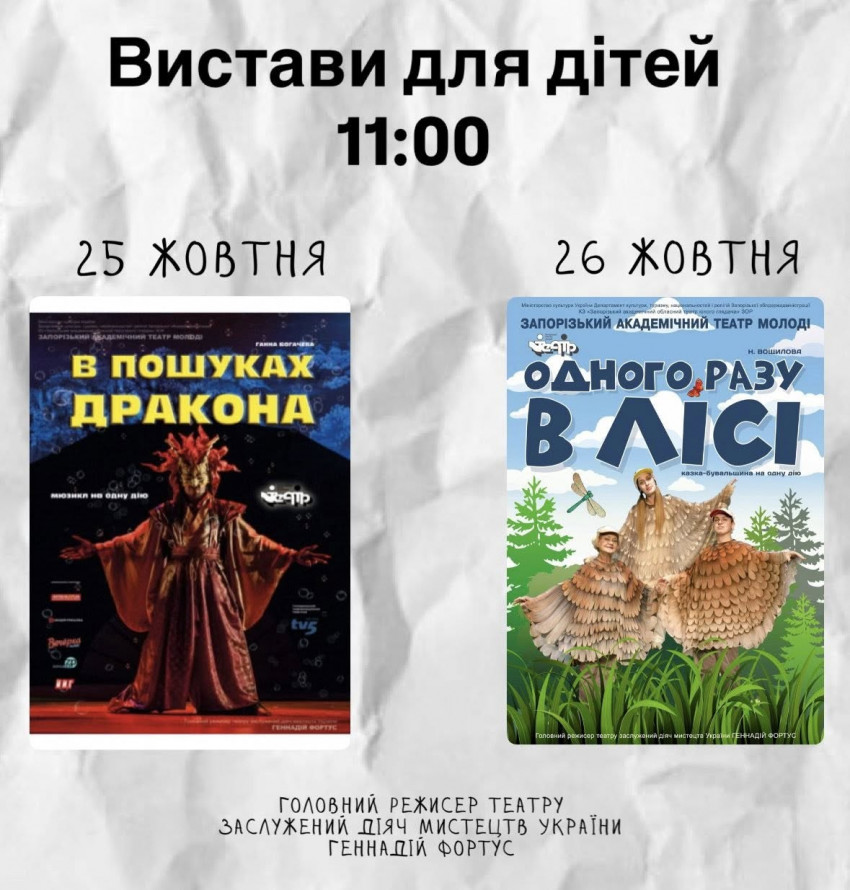 - 25 жовтня об 11.00 - музична казка "У пошуках Дракона".