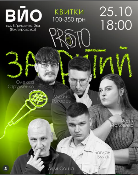 - 25 жовтня о 18.00 - стендап-вечір "PROSTO закритий", "ВЙО".