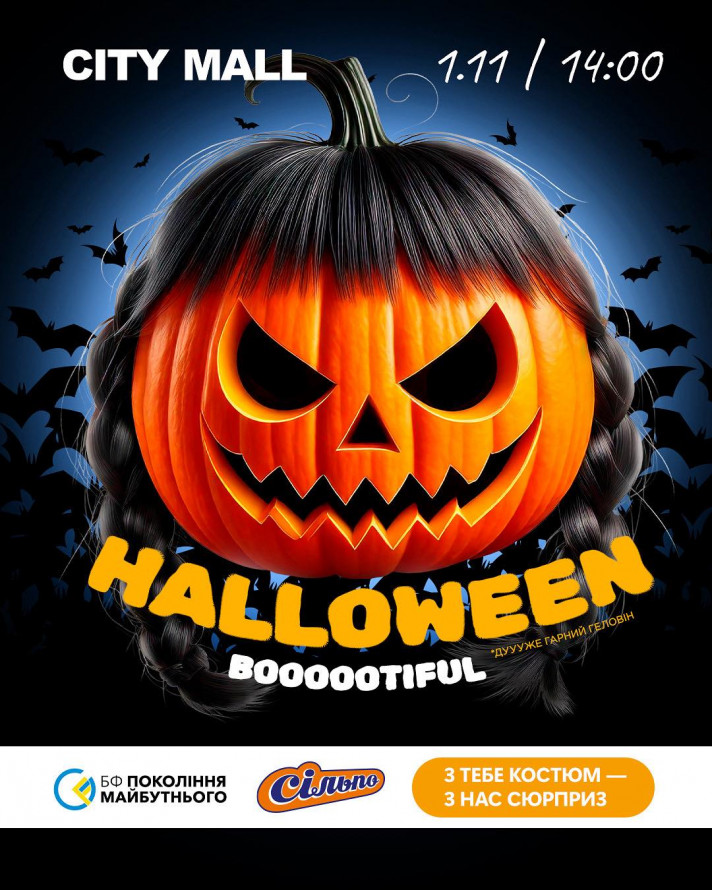 - 1 листопада о 14.00 - Boooootiful Halloween у ТРК CITY MALL: Кріо Magic шоу — ефектні експерименти з крижаними хмарами й димом; аквагрим "Створюємо страховисьок" від БФ "Покоління майбутнього"; воркшоп: виготовлення брелока-шейкера «Гарбуз»; показ костюмів; розіграш призів серед найактивніших гостей. Приходьте у геловінському образі - на гостей у костюмах чекають смачні подарунки.