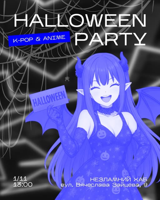 - 1 листопада о 13.00 - "Косплей-Гелловін паті". Дрес-код: ваш образ має містити гелловінський елемент або бути у стилі "dark character".