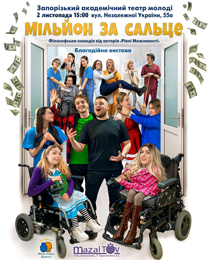 - 2 листопада о 15.00 - благодійна авторська вистава, філософська комедія "Мільйон за сальце” волонтерської інклюзивної театральної трупи “Рівні Можливості” . Актори збирають кошти на авто для артилеристів, серед яких служить їхній колега Ростислав Анасійчук. Реєстрація тільки на цю виставу через Google-форму за посиланням або за телефонами 096-365-48-18 (Настя), 075-213-43-00 (Мілана).