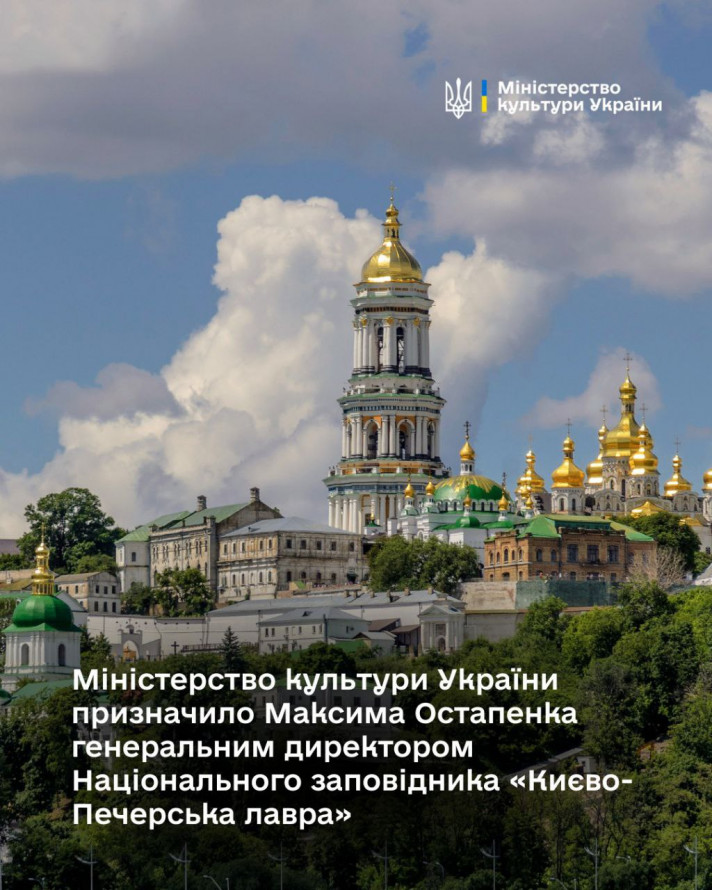 Міністерство культури України призначило Максима Остапенка генеральним директором Національного заповідника "Києво-Печерська лавра". Він розпочинає роботу сьогодні, 15 січня. Про це повідомили у Мінкульті.