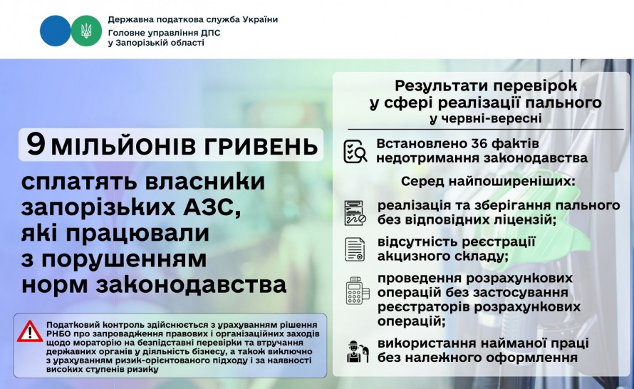 Раніше ми писали, що у Запоріжжі податківці перевірили кафе та заправки і виписали штрафи більше ніж на мільйон.