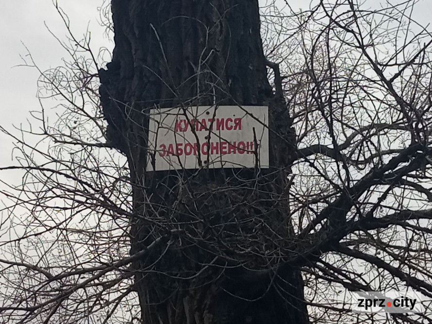 Взагалі у воєнний час не можна знаходитись на узбережжі Хортиця. Але це - житлова зона на острові Хортиця, вулиця Наукове містечко. На пляжі є попередження, що купатися заборонено. Втім, саме по узбережжю зараз ходити і незручно - мокрий пісок, багнюка. Краще дивитись здалеку.