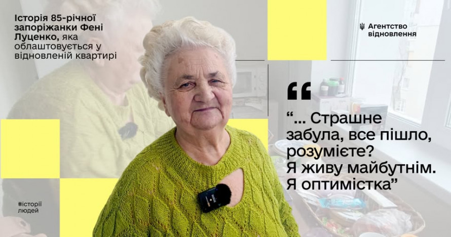 «Увесь пережитий негатив я залишила, коли зайшла в під'їзд. Коли нам дали ключі, я увійшла — і нічого… я все забула, все пішло, розумієте? Я живу майбутнім. Я оптимістка!» — ділиться спогадами Феня Василівна.