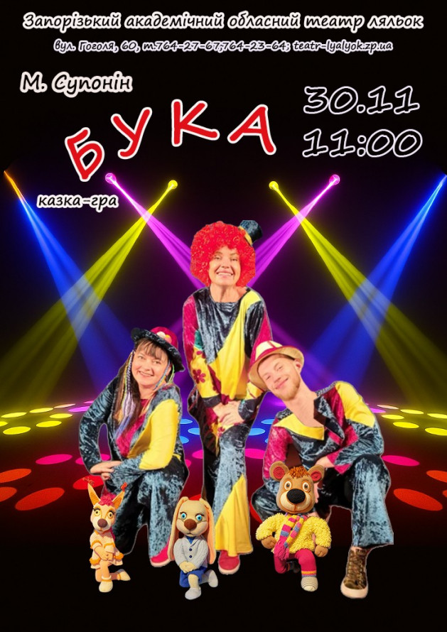 - 30 листопада об 11.00 - казка-гра "Бука" про маленьке сердите зайченятко, яке ні з ким не бажає дружити. Але після зустрічі з вовком Бука потрапляє в біду і допомогти йому зможуть лише справжні друзі.