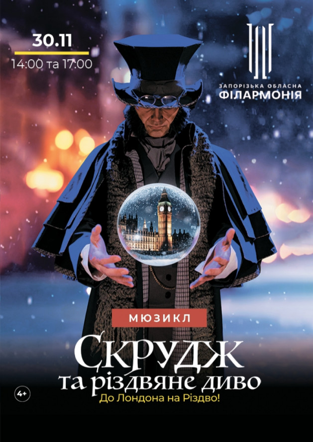 - 30 листопада о 17.00 - мюзикл "Скрудж та Різдвяне диво".