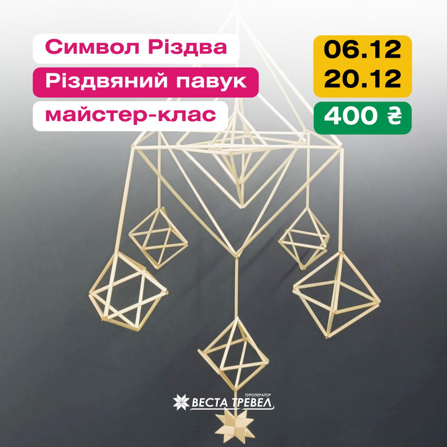 - 6, 20 грудня - майстер-класі “Різдвяний Павук” з виготовлення символа Різдва, об’ємного оберіга із соломи.