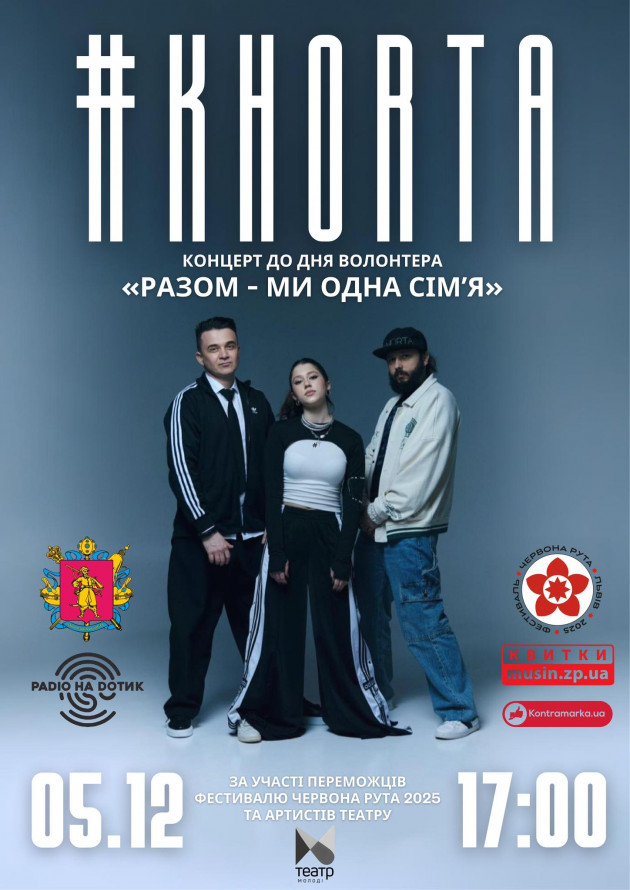 - 5 грудня о 17.00 - концерт “Разом — ми одна сім'я” гурту #KHORTA (Запоріжжя) до Дня волонтера, на сцені Театру молоді. Гурт є переможцем Всеукраїнського фестиваля сучасної пісні та популярної музики "Червона рута 2025" у жанрі танцювальної музики.