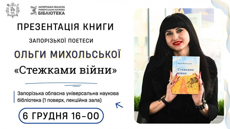 - 6 грудня о 16.00 - презентація книги запорізької поетеси Ольги Михольської "Стежками війни". Під час презентації книги наживо виступить запорізький рок-гурт "Простір часу". Вхід безкоштовний.