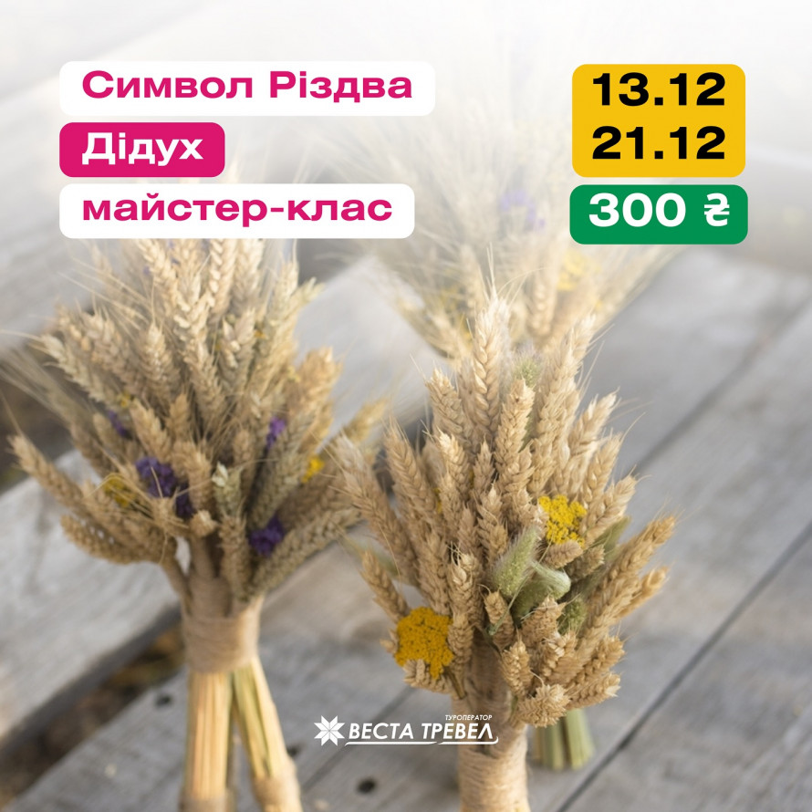 - 13, 21 грудня - майстер-клас з виготовлення Дідуха — символу українського Різдва.