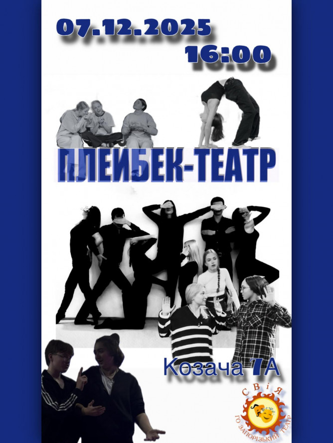 - 7 грудня о 16.00 - фестиваль плейбек театру: актори показують історії, які розповідають глядачі.