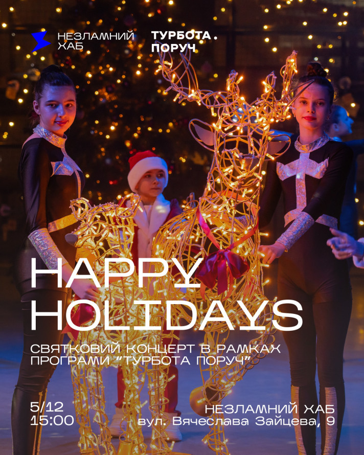 - 5 грудня о 15.00 - "Happy holidays", святкова програма в рамках міської програми “Турбота поруч” (для людей 60+).