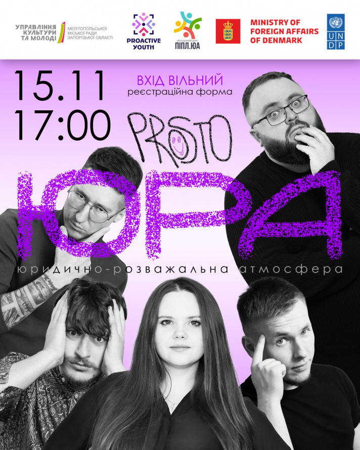 - 15 листопада о 17:00 - стендап-лекція "ЮРА: Юридично. Розважально. Атмосферно" для всіх, хто любить гумор і не боїться, у Молодіжному центрі "Піпл. юа".
