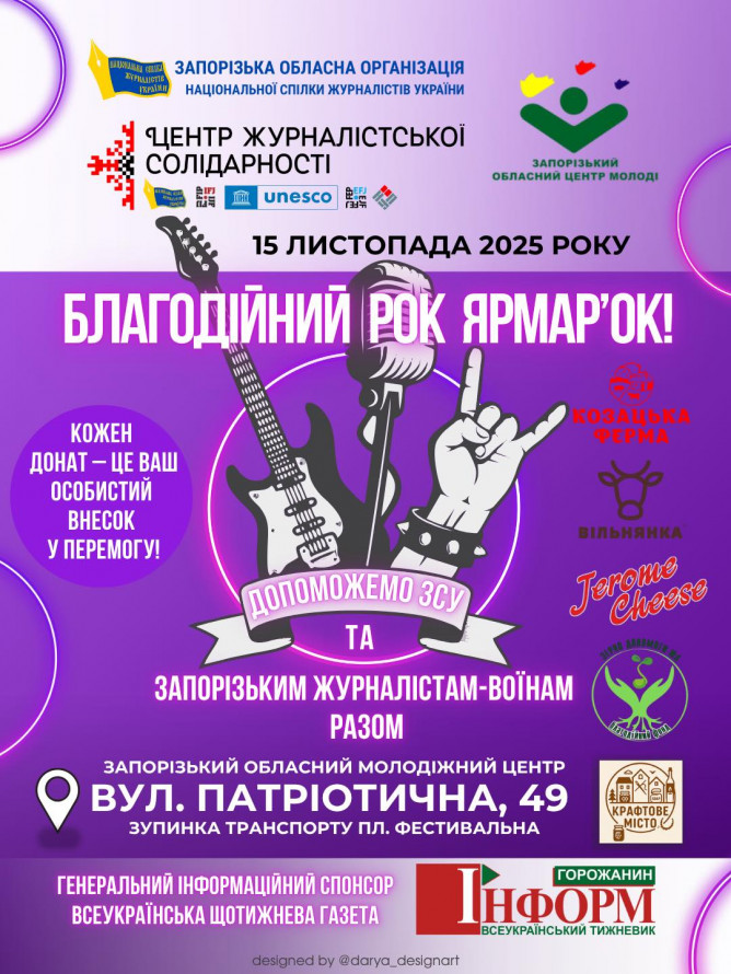 - 15 листопада - благодійний рок-ярмарок, у Запорізькому обласному молодіжному центрі.