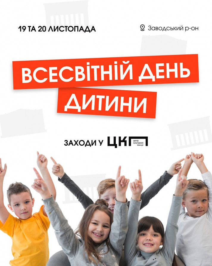 - 20 листопада, 16.00–18.00 - казкові квести, виставка дитячих малюнків і майстер-класи від творчих студій у ЦКП "Молодіжний" (вул. Мирослава Симчича, 53). Вхід вільний.