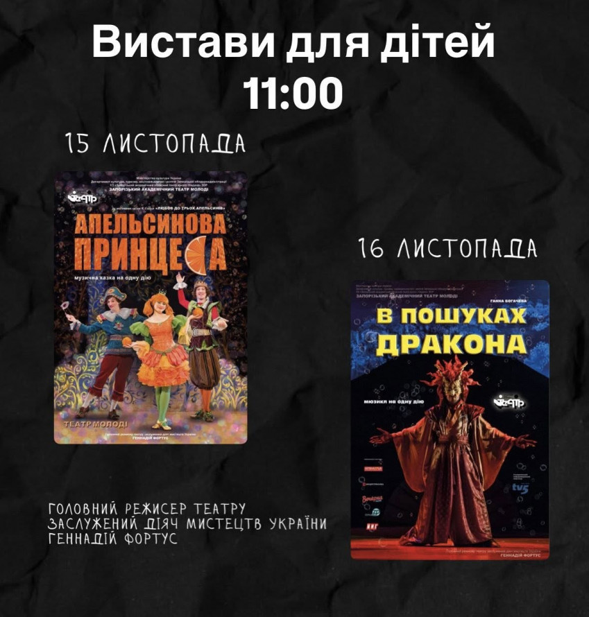 - 15 листопада об 11.00 - казка "Апельсинова принцеса".