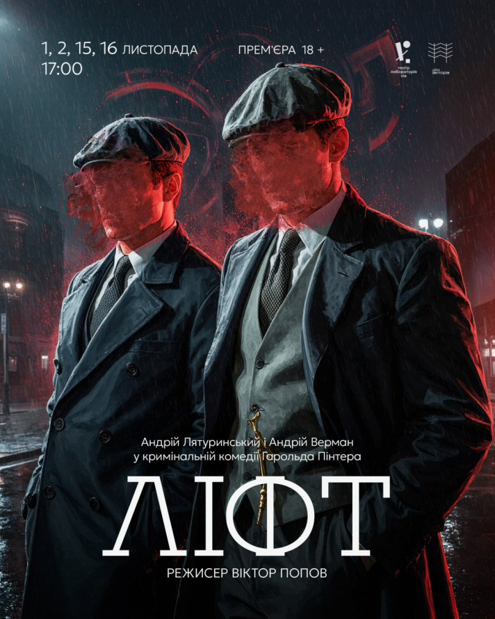 - 15, 16 листопада о 17.00 - прем'єра сезону, кримінальна комедія "Ліфт" за п'єсою Гарольда Пінтера, режисер-постановник Віктор Попов. 18+ (ненормативна лексика, звук пострілу).