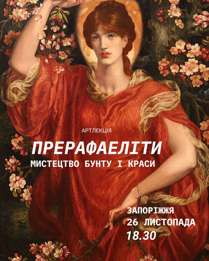 - 26 листопада о 18.30 - лекція "Прерафаеліти. Мистецтво бунту та краси" від кульутрологині Льони Радченко. Деталі та реєстрація в direct лекторки.