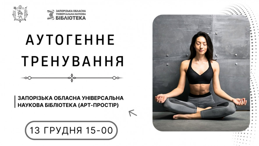 - 13 грудня о 15.00 - аутогенне тренування (аутотренінг).