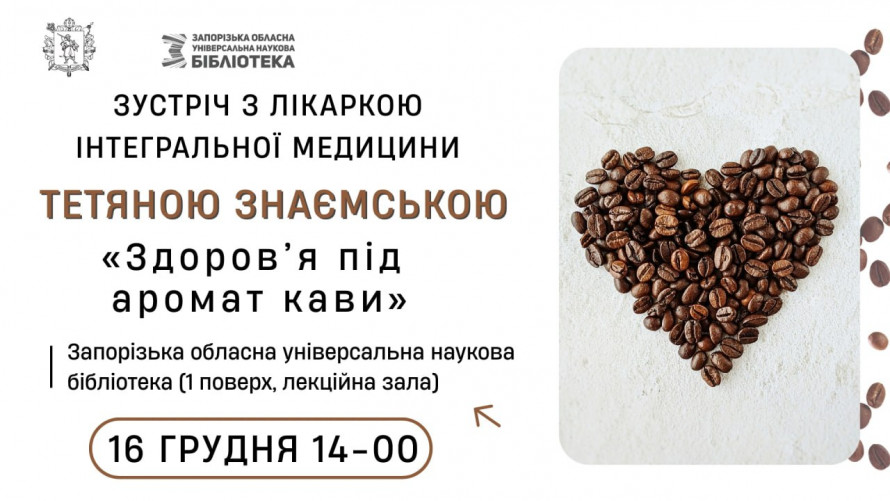 - 16 грудня о 14.00 - зустріч з лікаркою інтегральної медицини Тетяною Знаємською "Здоров'я під аромат кави".