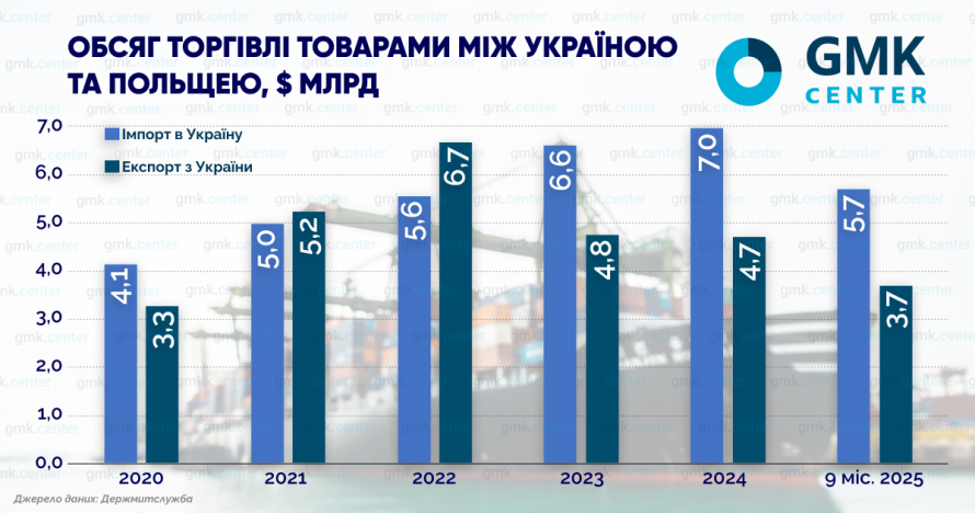 Імпорт із Польщі, навпаки, зростав стабільно: з $5 млрд у 2021 році до $7 млрд у 2024-му, тобто на 40%. За перші три квартали 2025 року ввезення польських товарів збільшилось ще на 12% — до $5,7 млрд.