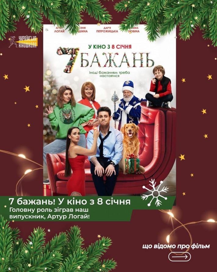 8 січня в українських кінотеатрах розпочався показ сімейної комедії "7 бажань". Це тепла новорічна історія про сім’ю, дитячі мрії та бажання, які мають властивість здійснюватися у найнесподіваніший момент.