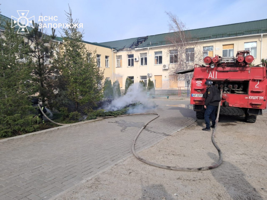 Крім будинку, в Михайлівському вибуховою хвилею пошкоджений фасад лікарні. Також в одному із сіл рятувальники ліквідували наслідки влучань по закладу освіти (судячи з фото - у Кушугумській громаді).