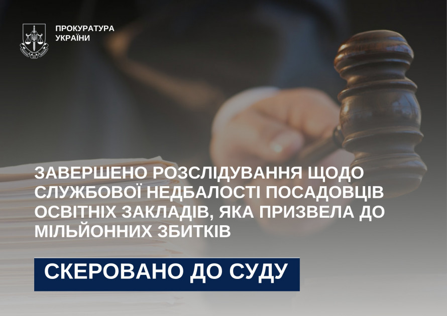 У прокуратурі Запорізької області завершили досудового розслідування щодо службової недбалості в освітній сфері. Обвинувальні акти стосуються двох працівниць комунальних навчальних закладів, які допустили закупівлю неякісного кам’яного вугілля. Про це повідомили у пресслужбі відомства.