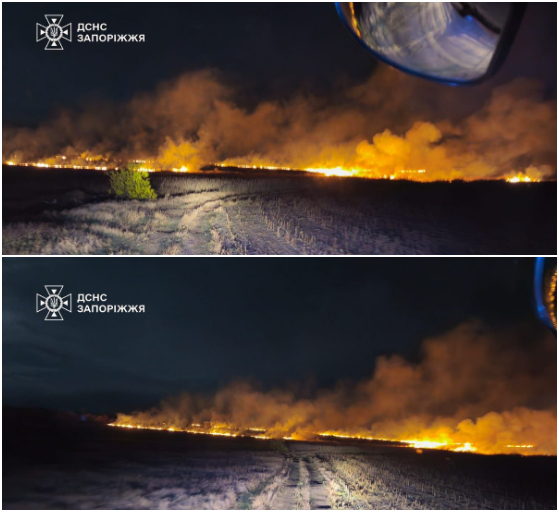 Зокрема, у Запорізькому районі через обстріл зайнялася суха рослинність — полум’я охопило понад чотири гектари території.