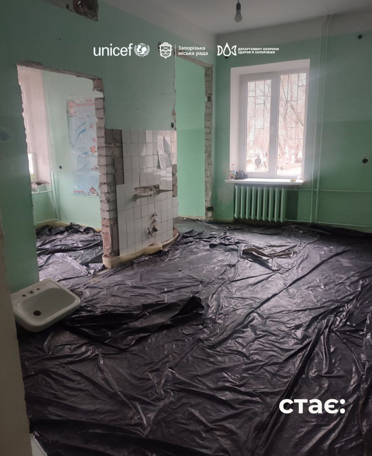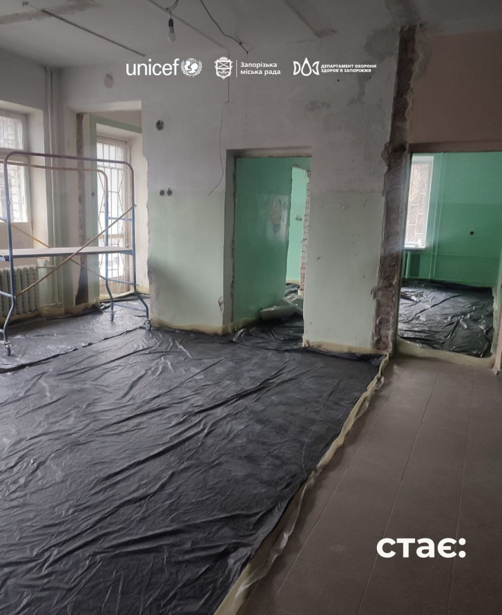 У Запоріжжі триває ремонт амбулаторії Лівобережного центру первинної медико-санітарної допомоги №1. Тут створюють сучасний та дружній до дитини простір у межах програми ЮНІСЕФ.